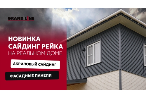 Сайдинг-рейка Grand Line — это панель, разделённая на три узкие рейки с чётко выраженными рёбрами.